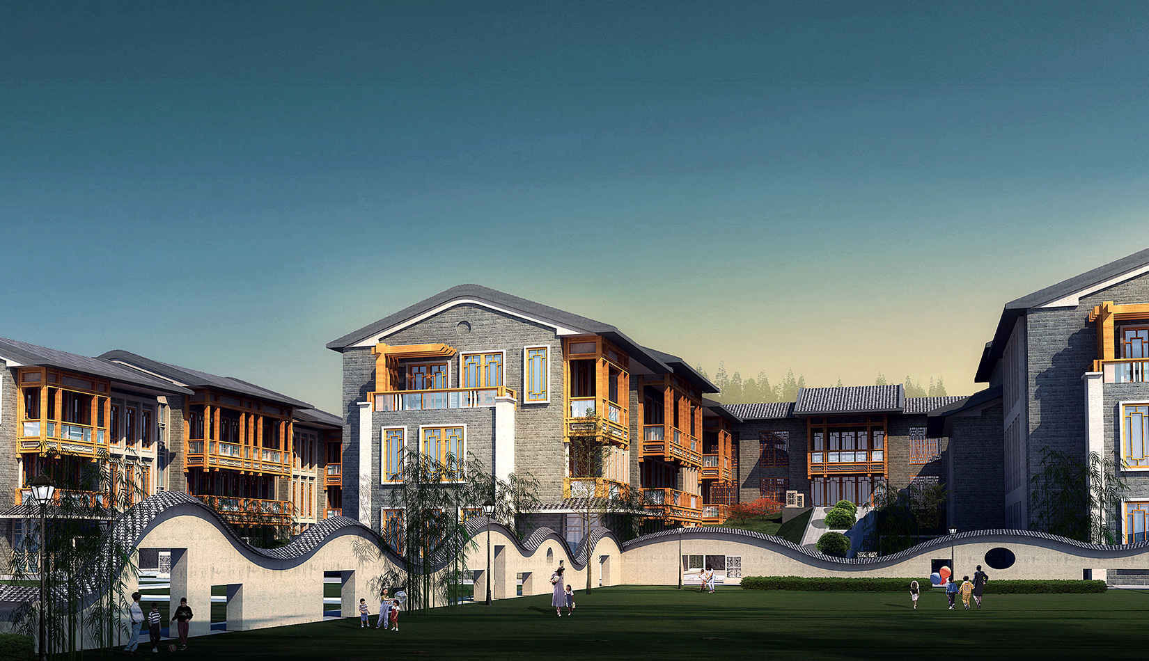 建筑造型采用中國古典建筑形式,立面符號提煉古典的建筑符號,努力營造出中國傳統(tǒng)私塾的學(xué)院派的風(fēng)格。